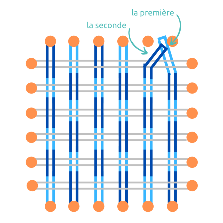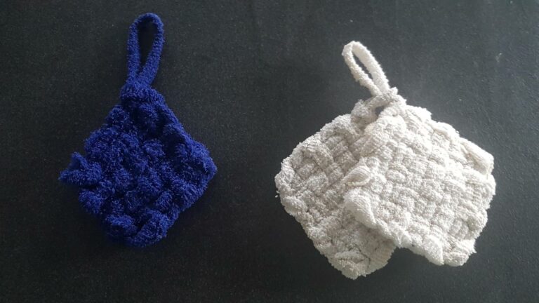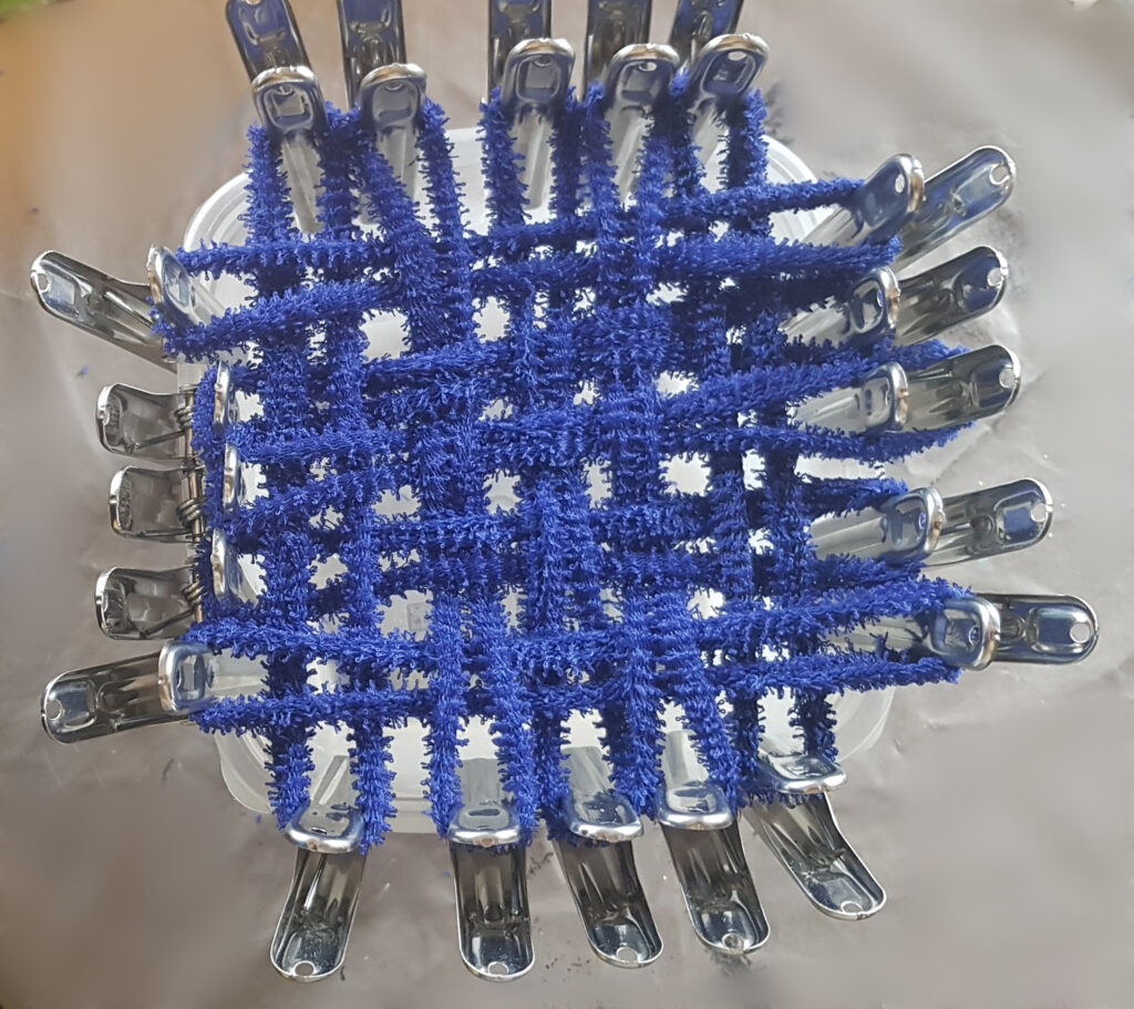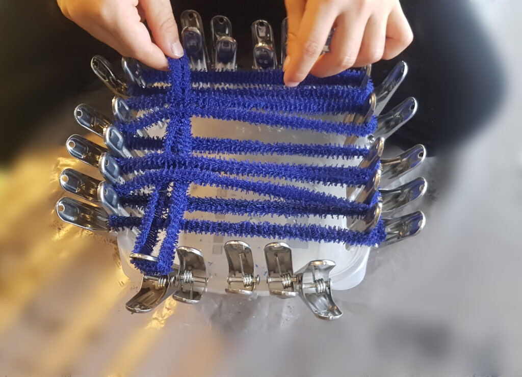 ♦ Si vous souhaitez une éponge plus grande, il suffit d’ajouter une épingle sur chaque côtés ce qui fait donc 4 épingles en plus et découper 2 bandes en plus ;