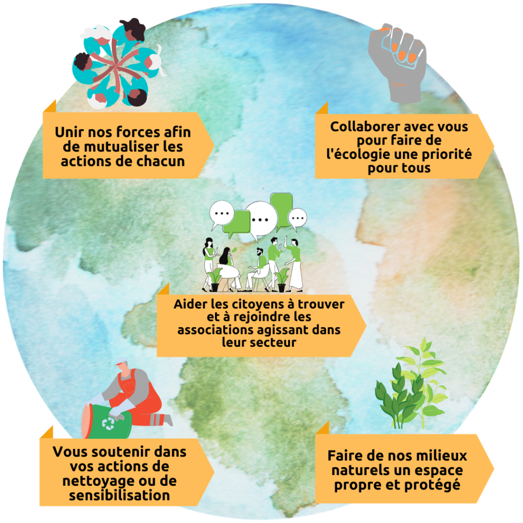 À travers cette démarche nous désirons créer un lien entre les associations, les collectivités territoriales, les syndicats de déchets et les citoyens pour lutter ensemble contre les décharges sauvages.